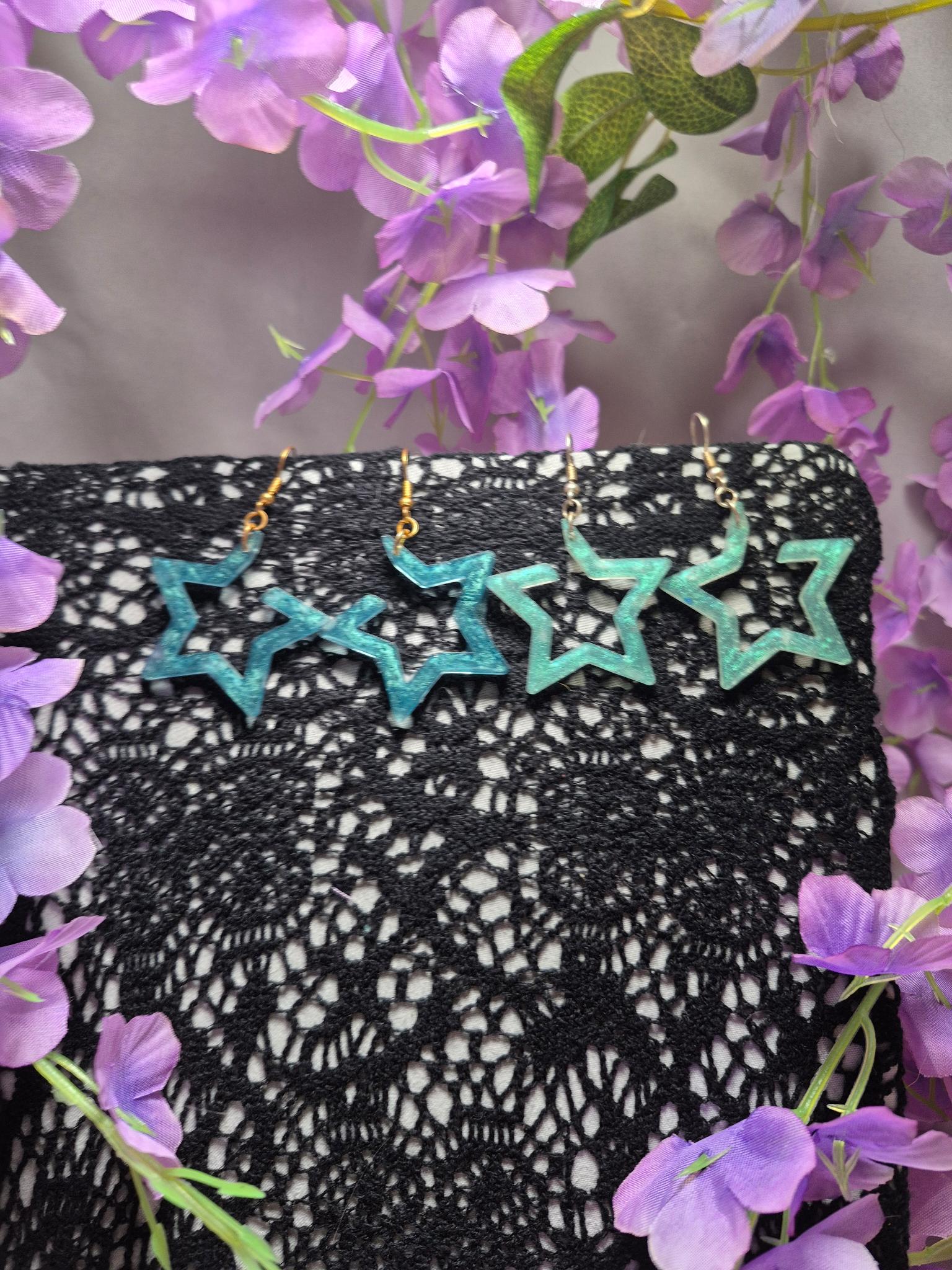Handmade deep in the forests of Appalachia to be a shining light in the darkness. This pair of star earrings are made from resin with holographic glitter. Each pair sold individually, see variants.