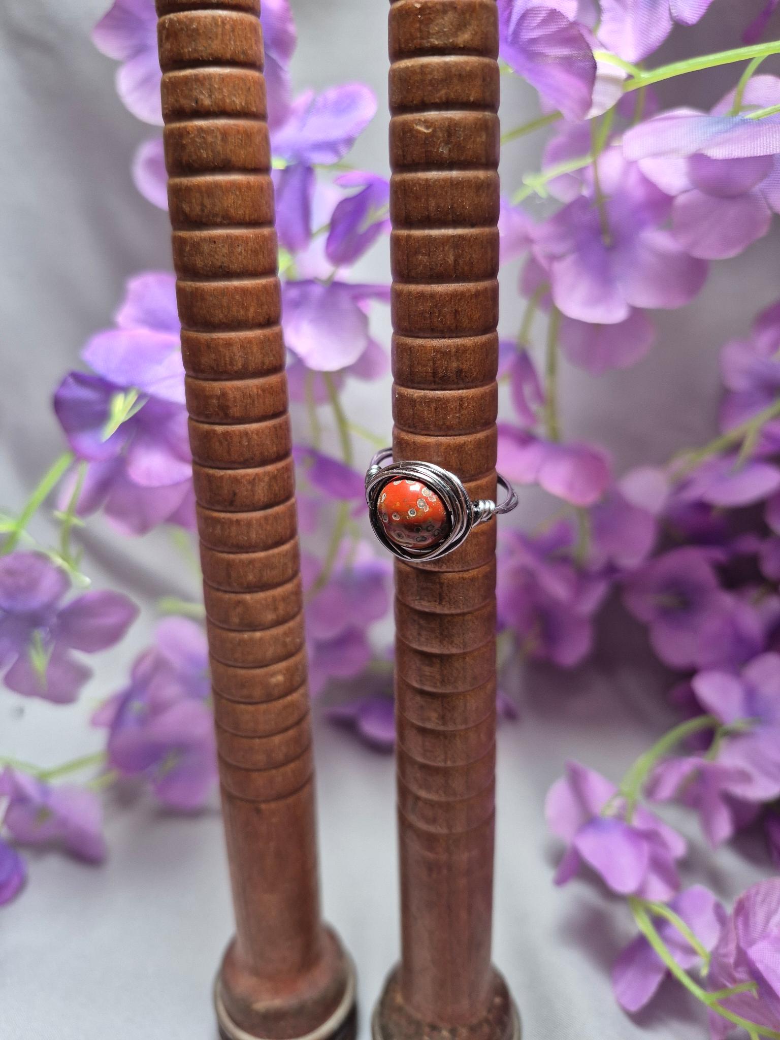 Handmade deep in the forests of Appalachia to be a shining light on your hand. This gunmetal-toned metal wrapped ring contains a orange agate.
